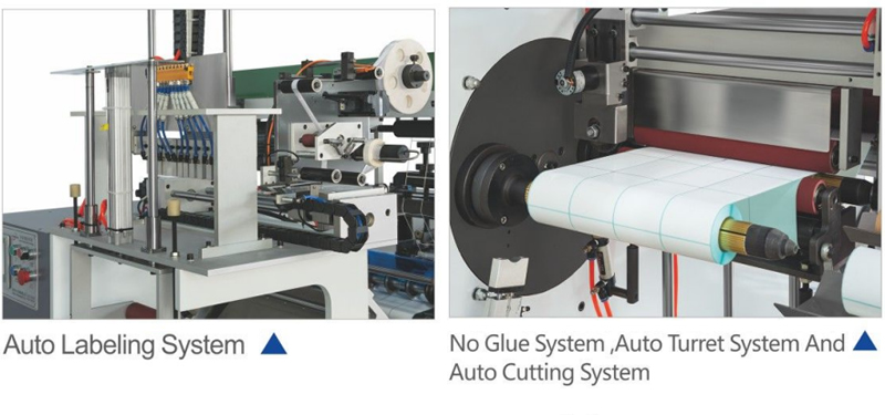 This machine max speed is 220m/min,adopt 7 pces of sero motorto control,with slitting,auto paper core loading, auto cutting,autolabeling,auto rewinding functions,paper core without glue,nofolding,with meter counter,quantity counter.