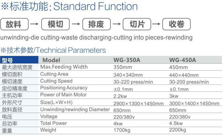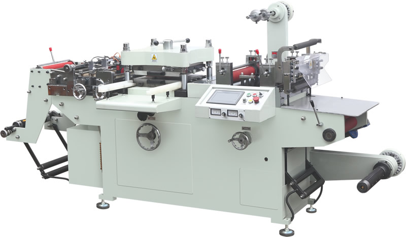 該機(jī)為平壓平結(jié)構(gòu),電腦伺服系統(tǒng)拉紙,材料兩邊及縱向由光電眼跟蹤定位。放料-模切排廢-切片或收卷,由電腦全程控制一次完成。