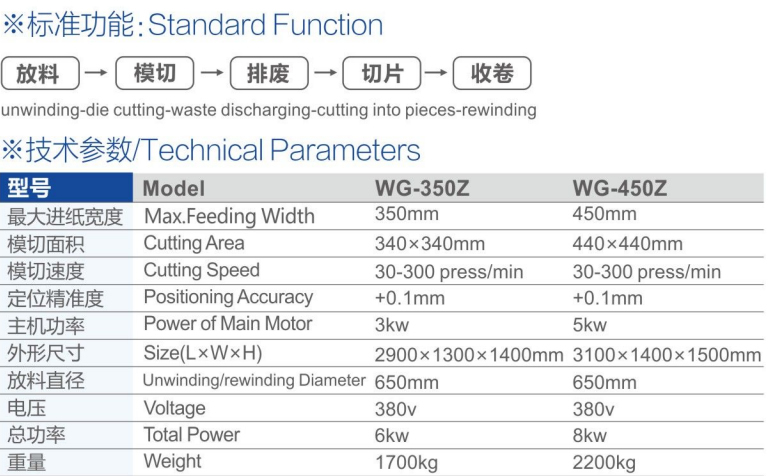 > WG-350Z/450Z 鐳射防偽商標自動中速模切機