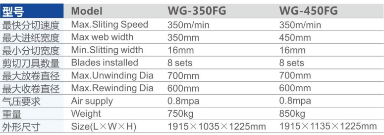 相關產品: 350FII-450FII 自動標簽高速雙收分切機 WG-350F/450F 自動切分機 WG-550FII 自動窄幅標簽高速分切機 WG-350FZ/450FZ 窄幅標簽自動中速分切機 WG-350FQ/450FQ 全自動分切機